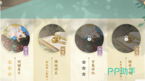 无论选择哪一种方法都可以进入到锦绣风华中,目前这个玩法就会给玩家带来4个章节,每一个章节都会有15个小节。其中还会有三类不一样的关卡,有小游戏,有剧情,还有换装。