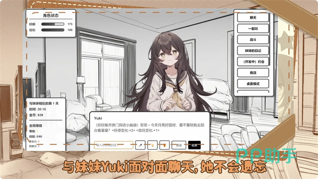 在叙事向生活模拟游戏《妹居物语》中,陪伴感是贯穿全程的核心体验。玩家将与妹妹Yuki开启同居生活,在真实时间推进的日常节奏中,通过对话选择、活动安排与情感互动,逐步塑造彼此的关系走向。游戏采用动态事件系统,所有关键节点均基于实时行为触发——每一次互动都会影响Yuki的性格倾向、信任值成长曲线及人生发展路径。