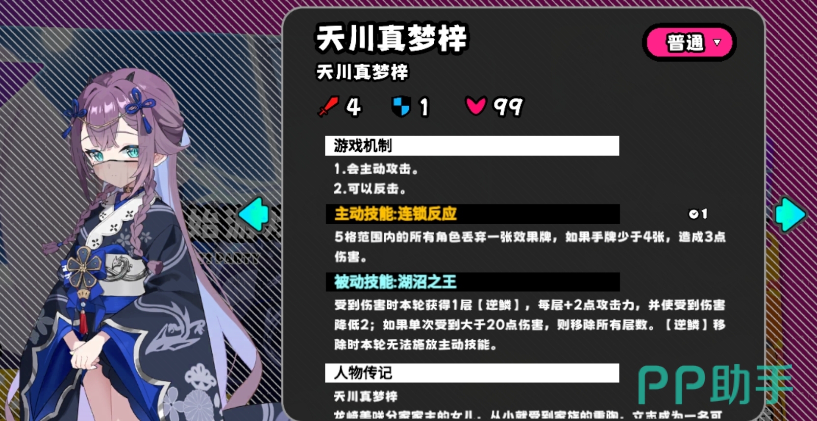 反之,若多数玩家选择协助真梦梓,则天川苍鲤转为Boss。该角色具备稳定反击机制,每次成功反击均可叠加1层金鳞,每层同时提升1点攻击力与1点防御力,且无层数上限。其主动技能还可召唤小怪“金小鱼”,后者亦可通过主动技为天川苍鲤叠加金鳞。此时,真梦梓会向距离最近的玩家发放“毒牙”手牌——此卡唯一作用即为指定对天川苍鲤使用,可精准清除其当前金鳞层数。及时打出毒牙、打断金鳞累积节奏,是压制该Boss强度的核心战术节点。