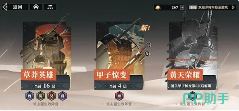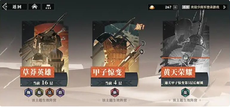 装备加持,是武将成长不可或缺的一环,其中兵械库作为装备获取的宝库,以其丰富的主题和多样的装备,从草莽英雄到甲子惊变,再到黄天荣耀,三大主题对应着不同阵营的装备塔,橙色装备、无双装备都是其中奖励。