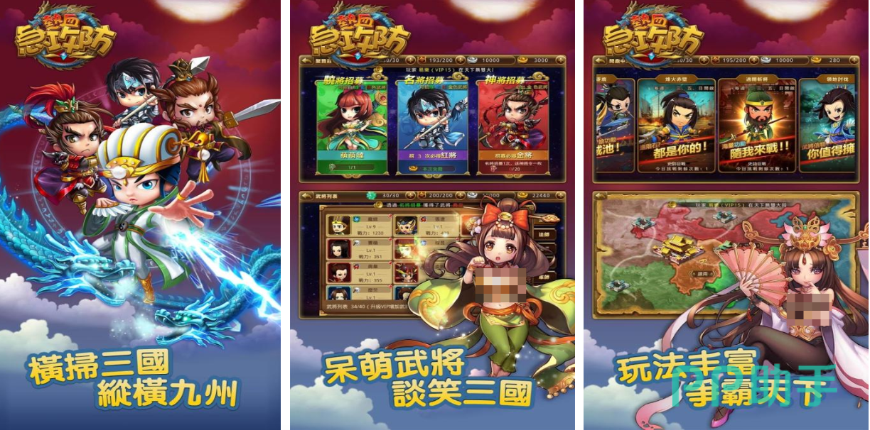 这是款充满诚意的竖屏操作三国题材防御类作品,玩家会在各个三国战役任务中尝试塔防闯关,背景呈现写实风格且具备浓郁历史元素,各种恢弘的战役任务让大家更清楚三国的历史,百样多变的三国武将就是你的防御道具,甚至可以在AOE技能的辅助下快速清关,百变的战术与无尽关卡的加持增添了可玩性。