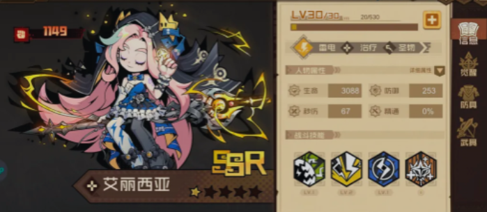 若队伍整体承伤压力较大,可进一步补强治疗位,SSR品质角色艾丽西亚是优选。她具备雷属性治疗特性,大招可实现全体即时回血;被动效果在触发后,能显著提升对单个目标的后续治疗量,在队伍血线普遍偏低的中后期尤为关键。此外,艾丽西亚属性兼容性优秀,对队友配置无苛刻要求,可灵活嵌入多种组合,作为稳定续航核心延长战斗持续时间。