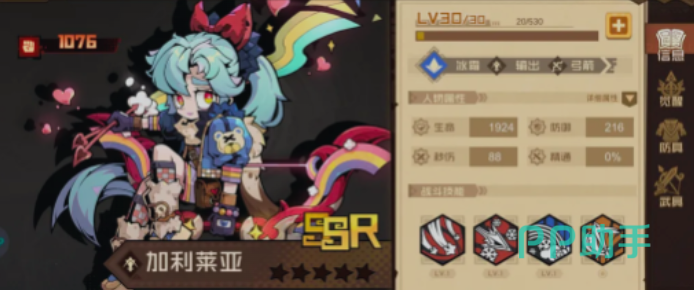 与瑞德形成攻防闭环的主力输出是伽利莱亚。她拥有全屏AOE大招,对单体Boss具备持续压低血线的能力;其伤害机制深度绑定护盾数值——护盾越厚,转化的额外伤害越高。这意味着前排瑞德提供的护盾增益,会直接放大伽利莱亚的输出上限,形成“前排越硬、后排越猛”的正向循环。需注意的是,该角色前期护盾成长未起量时表现平缓,但中后期配合护盾强化类效果后,将成为团队核心范围清场单位。