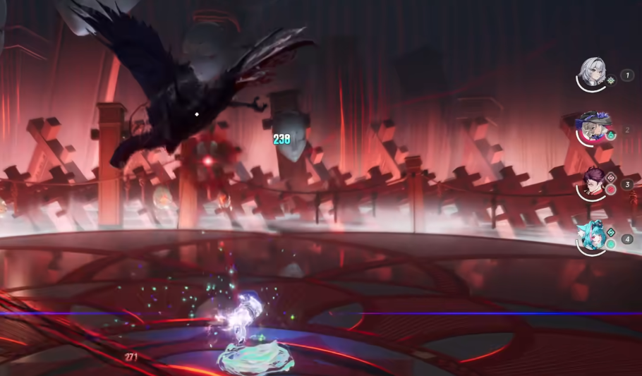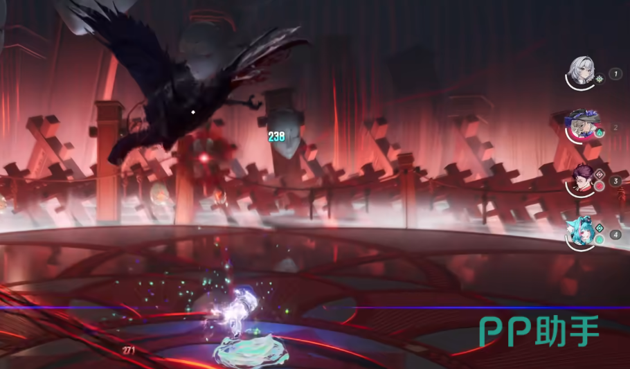 战斗初期,囿巢鸟处于低空活动状态,尚未启用面具协同攻击。此时应集中使用普攻快速压低血线。当其生命值降至50%时,行为模式显著升级:开始频繁起跳并触发面具红光扫射。此时需及时切换至娜娜莉,待大招能量充满即刻释放,实现强制控制。该阶段为全队爆发输出黄金期,务必把握节奏衔接连招。