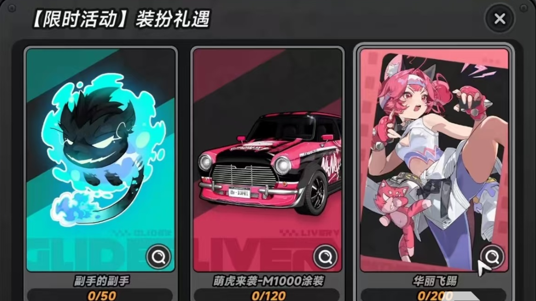 除滑翔翼外,该限定卡池还设置了多层级外观奖励体系:累计抽卡达120次,可解锁摩托车与跑车等主流载具的痛车风格定制车衣;累计达200次,则可获得包含独立待机动画、跑图动作模组及技能释放特效在内的全套视觉组件。三档奖励均严格限定于当期限定卡池范围内,不与常驻卡池共享进度,确保获取路径清晰、规则透明、权益专属。
