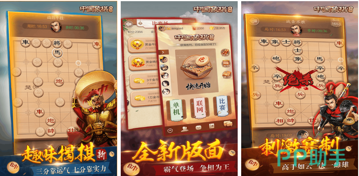 象棋是款历史悠久且玩法精彩的对弈游戏,支持竖屏双人PK而且营造出了对弈的紧迫感,也可参与人机对练缓慢让自己领悟棋艺,界面呈现和下棋规则展现简单同时极具竞技性,多种博弈主题的模式会让你遭遇各种局面,立体棋子与真实滑动音效都令人沉迷,真实象棋对弈的气氛令象棋高手回味无穷。