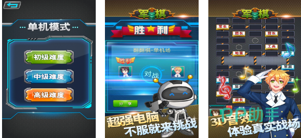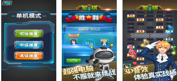 军事棋类游戏爱好者可试试这款竞技性较高的作品,这款军旅风格的2D对弈佳作模块较多,就连基础的AI模式都分为三个难度,前期可以试着在单机模式中学学军棋方面的规则,之后可实时在线挑战各路军棋大神,环绕的音效将真实战场环境呈现了出来,军棋对抗的主题玩法也与其他博弈手游有所不同。