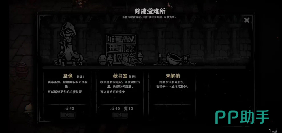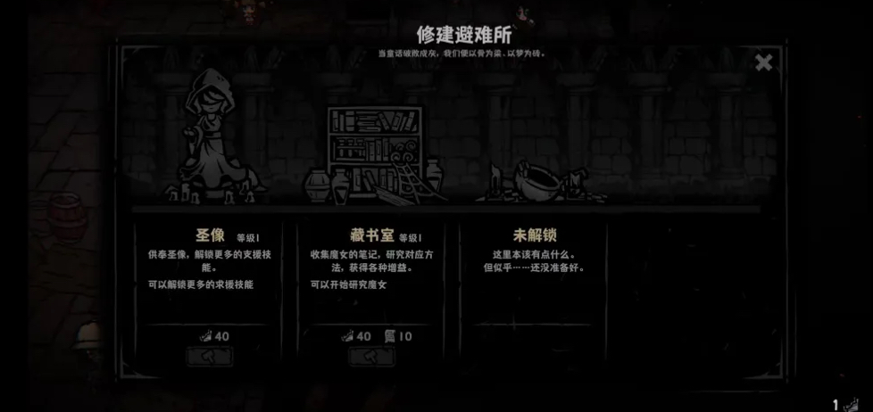 游戏中存在三位关键NPC:铁匠、铁匠孙女及图书管理员。铁匠孙女为第二位可操作角色;铁匠与图书管理员则主要承担局外成长功能。解锁图书管理员需消耗蜡烛,再以书页进行解读研究,从而激活多项局内强化效果,如增加关卡刷新次数等;铁匠除可升级图书馆外,还支持建造女神像,但同样需大量蜡烛投入,整体强度表现均衡。