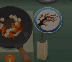 准备好一切之后,玩家就可以投入到菜品的烹饪过程中,首先对火候的精准把控和制作技巧才是保证玩家制作出完美星级菜品的关键,起锅烧油之后玩家不要先放豆腐,而是先放入酱油进行染色,之后再加入豆腐进行翻炒。