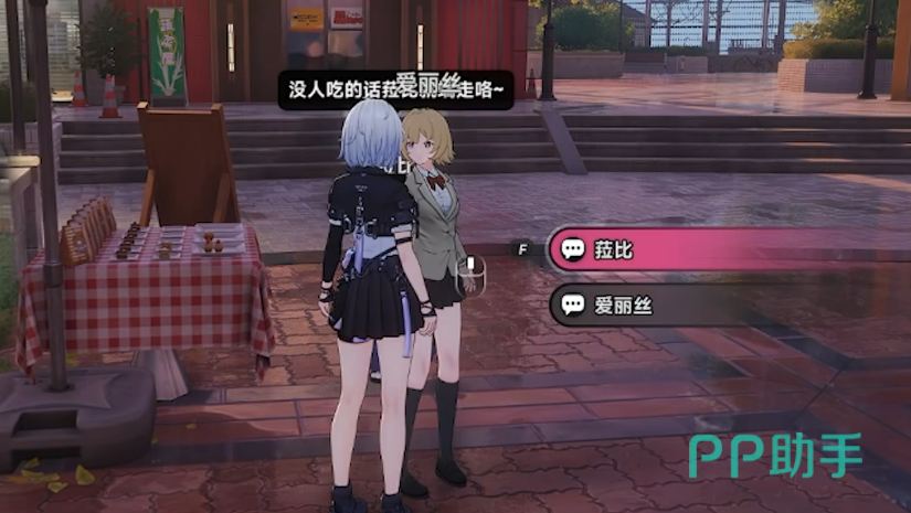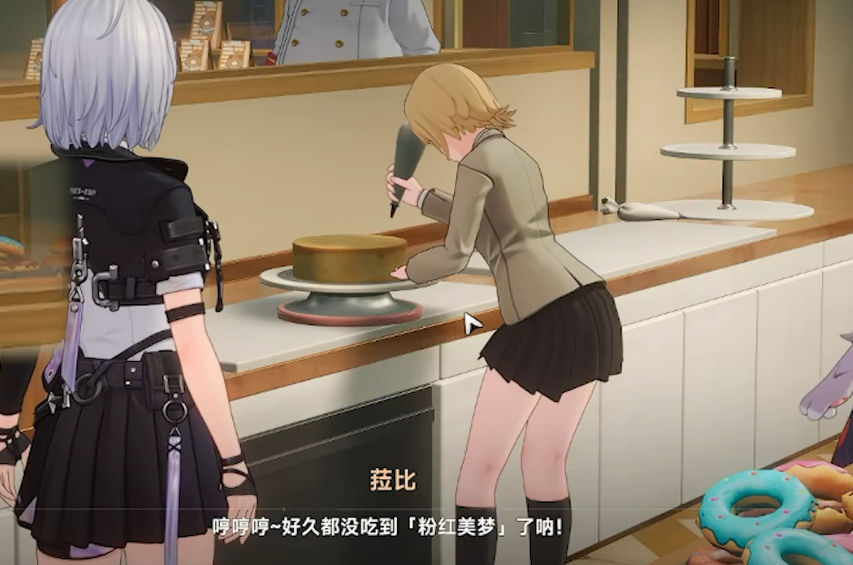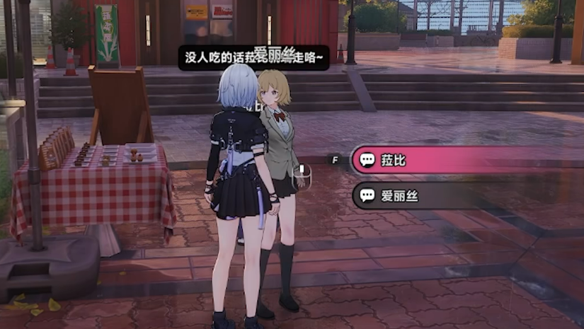 菈比对话完毕,重返烘焙坊与爱丽丝进行第七次交互。步出建筑向右移动,将自动触发新剧情。结束后再次面见爱丽丝,完成第八次对话;随即前往与JTF小队成员沟通;最后返回菈比处执行第九次对话。全部对话闭环后,再次进入烘焙坊与爱丽丝展开第十次互动。