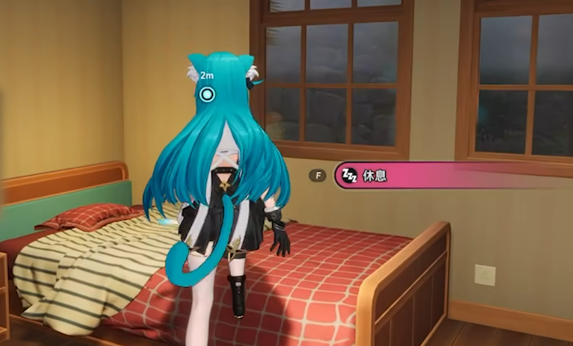 传送落地后,查看小地图右侧,任务引导将指向烘焙坊。进入后先与菈比对话,再深入内部与爱丽丝完成第五次交互。离开建筑后,根据任务标记定位附近电话亭。随后进入电话亭右侧独立住宅,屋内可见一张床,靠近并选择“休息”选项。休憩结束后接收新短信,阅毕后传送回维特海默塔,抵达即触发专属剧情动画。动画终止后,与当前场景NPC对话,继而前往寻找菈比进行第六次交流。