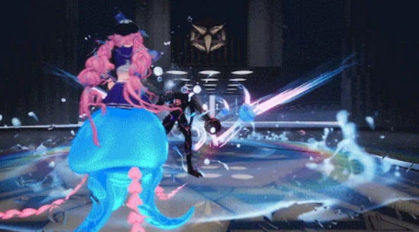 顿音则聚焦机动性与反击协同。当角色处于移动状态并长按闪避键时,海月将乘上水母载具,进入高速位移模式。此状态下,系统自动周期性生成水母弹攻击周边敌人;同时,极限闪避触发的反击动作将替换为四发水母弹齐射。该模式受耐力值约束,耐力耗尽即强制退出,因此需结合战况精准规划启用时机。