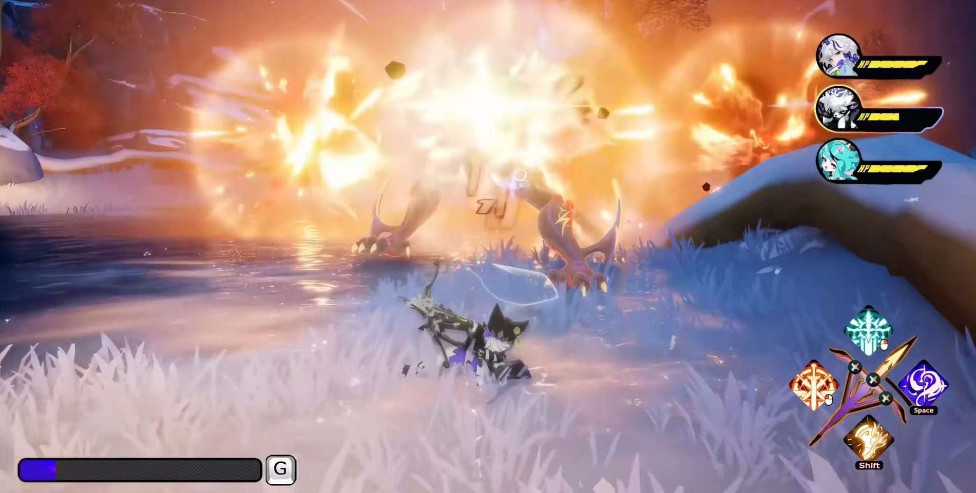 战斗系统采用三人小队无缝轮换机制,每位角色具备差异化定位:近战系专注弹反与硬直压制,远程系侧重TPS式精准打击,元素系则承担领域构建与连锁爆发职能。当能量积满触发“领域展开”,敌方时间冻结,我方全员进入三消界面——通过消除对应元素块充能,最终释放多人合体技。整套循环围绕“弹刃值”这一核心资源运转:普攻可随时衔接技能或闪避,衍生出对波判定、弱点破坏、状态打断等多种进阶技巧,尤其在Boss战中尤为关键。
