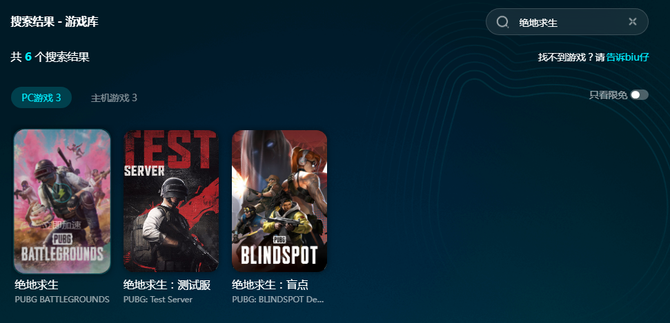 biubiu加速器玩绝地求生再适合不过了,它可是官方赛事钦点的加速器,可以加速pubg主机+端游共6款游戏,并且开放了主机的加速权限。现在只要成为biubiu新用户就能马上享受到3小时免费加速,还能使用【biubiu不卡顿】来兑换3天免费加速,试用活动特别丰富。