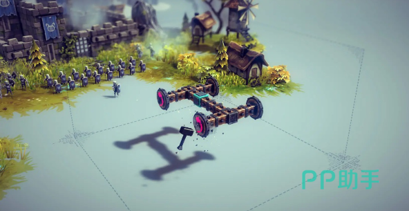 游戏最大的亮点在于其开放式的建造体系。玩家可使用种类丰富的组件进行创作,从小型齿轮到大型攻城器械部件,全部可供调用。无需遵循固定图纸,完全依靠个人想象力自由组合机械结构。无论是复刻中世纪战争机器,还是设计空中飞行载具,都能在游戏中实现。这种高度拟真的搭建过程,既带来创造的乐趣,也充满技术挑战。整体美术风格采用复古中世纪基调,搭配质朴的村庄场景与辽阔的野外地貌,营造出浓厚的沉浸式氛围。