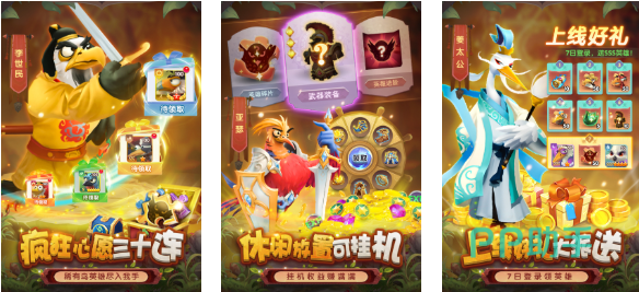 小鸟爱飞翔是款以小鸟为主角的卡牌回合制放置作品,许多知名人物都会以小鸟的造型呈现出来,世界观光怪陆离呈现出特殊的视听体验,疯狂抽卡获取小鸟角色即可轻松参与神秘事件,还有一些实力强悍的珍稀鸟英雄期待着大家养成,搞笑的剧情上演跟鸟类造型的角色交相呼应,更把这款手游作品的气氛营造的极为滑稽。