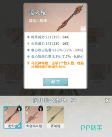 虽然大师姐整体的能力比较强,但是培养也是非常重要的,在游戏过程中要优先提升大师姐的灵力和抵抗性,在新法的选择上可以给人物配置上金龙诀、金鼎功这种金属性的心法,然后就是对于人物装备的选择上,尽量挑选一些枪类的装备,比如流火枪,还有百破枪,这种都是战斗能力比较强的装备。