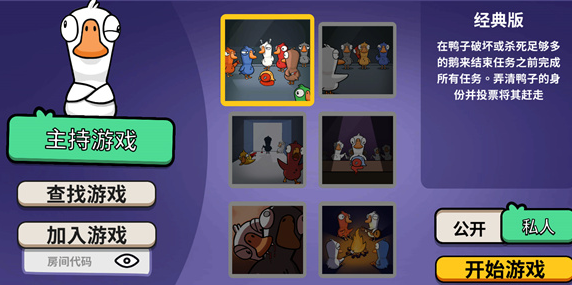 在游戏开局时,系统就会以随机的方法去分配阵营。加拿大鹅在被刀之后就会选择自动报警。警长可以主动的伤人,不过如果误伤好人,那么就会直接自曝。在鸭子阵营中的刺客,在会议的过程中也可以通过猜测身份的方法去杀人。专业的杀手在作案的时候一定要保证自己不会被其他的鹅看到。由此可见,每一个不同的角色在体验时都会有一些差异性,因此新手一定要牢记。