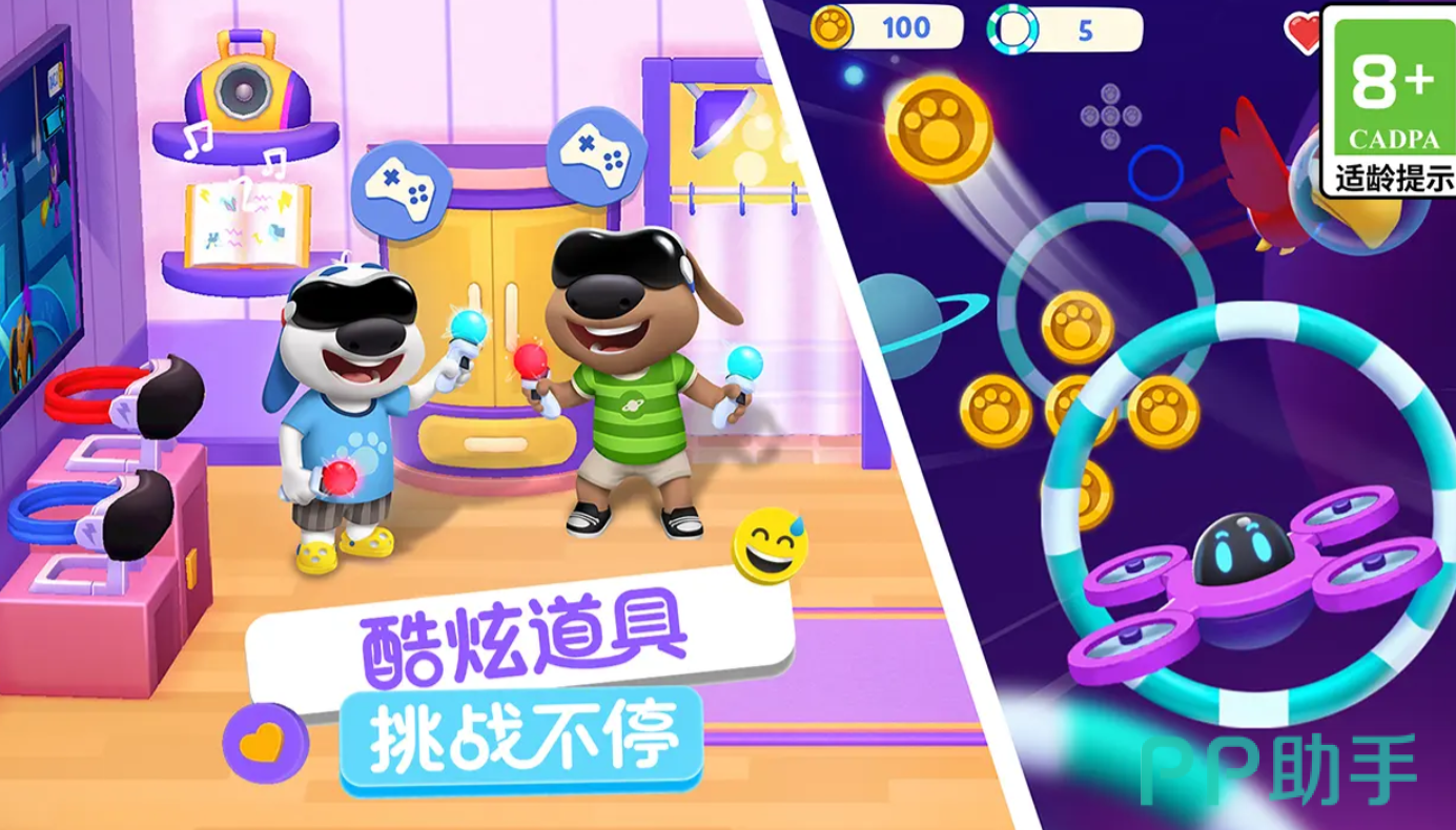 当然,游戏也支持玩家进行DIY设计,玩家可以进入到汤姆猫的小房屋之中,通过更换装潢,来更改他的心情数值,随着玩家不断推进游戏任务,同时完成和个小伙伴之间的互动,能够获取更多的金币,这些金币也能够在商城内,更换道具,亦或是购买外观,这些外观可以增加对应小宠物的潮流数值,同时,增强小宠物的互动性。