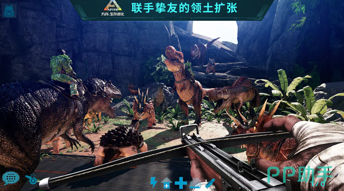 游戏中收录超百种史前生物,涵盖迅猛龙、三角龙、剑龙、雷龙、霸王龙及翼龙等标志性恐龙种类。所有生物均具备独立AI行为模式,支持驯服、骑乘、协作战斗及驮运物资等深度交互。借助飞行坐骑翱翔天际,或驾驭巨型掠食者横跨荒野,大幅拓展探索边界与战术维度。