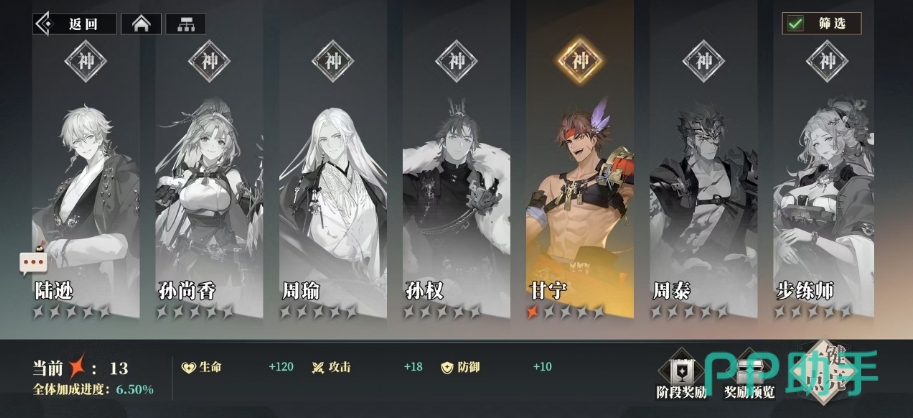 三国志幻想大陆2枭之歌武将有哪些大家现在清楚了吗?游戏中各个武将的制作在技能上面无一重复,且定位的选择丰富多样,同时大家还要考虑到各种各样的羁绊效果,而且后期还会有更多的武将慢慢上线哦。