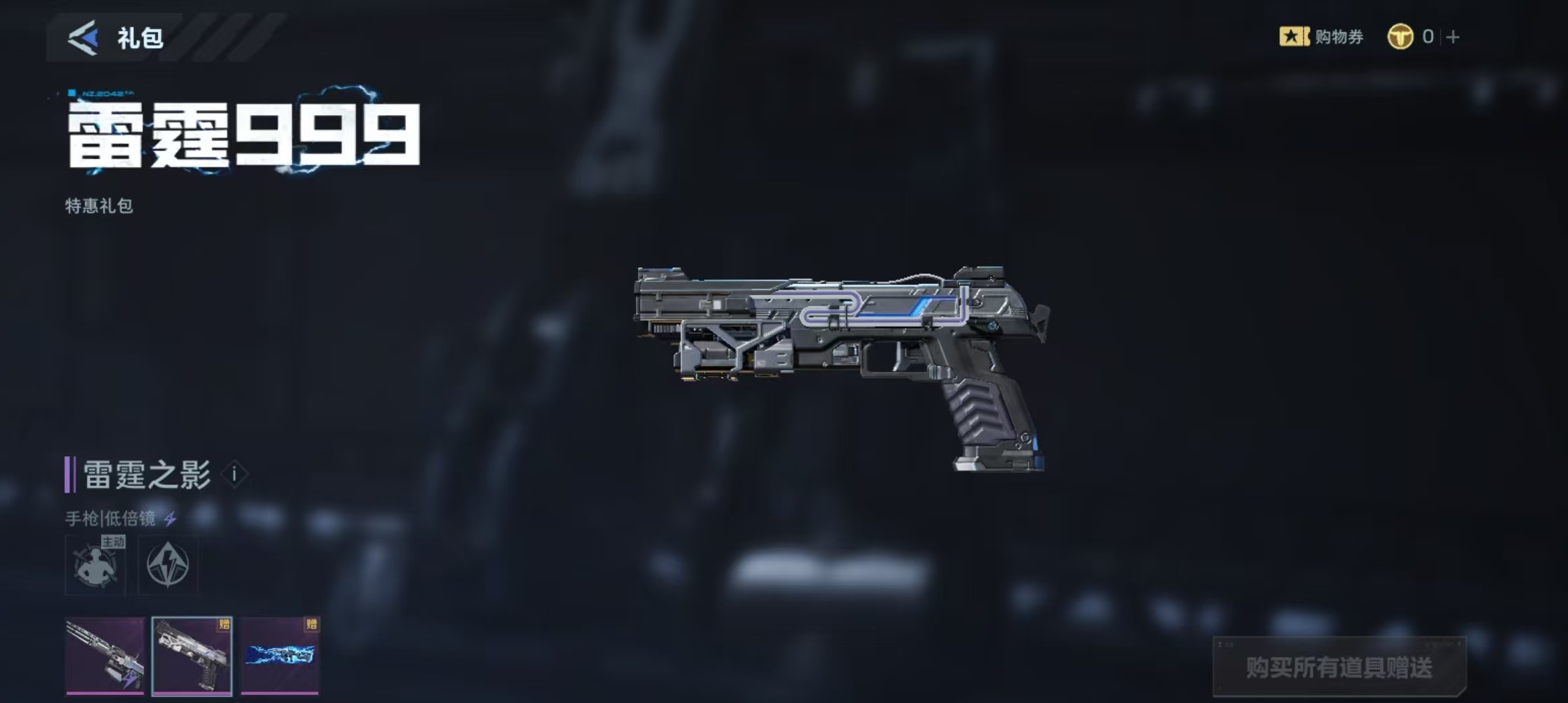 雷霆之影为限定款手枪,不支持单独售卖,主要通过两种途径获取:其一为购买“雷霆999特惠礼包”,该礼包售价为600NZ点数,内含主武器雷霆999、副武器雷霆之影及电光火石名片三重奖励;其二为游戏内免费获取路径,包括挑战指定副本、参与限时活动掉落,以及开启钛金密藏礼包——该途径虽存在概率性,但无需额外付费即可入手。