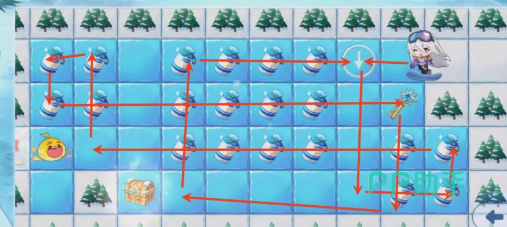 雪场活动是鲜牛奶与铃铛的重要来源,同时关联后续奖励解锁,具备高性价比。通关关键在于理解冰面物理规则:无遮挡时将持续滑行直至碰撞障碍物(如树木)才会停止。因此,路线预判比操作反应更重要。基础关卡地形呈标准网格,推荐采用“右→下→左→上”闭环动线,可一次性拾取全部奶瓶并精准停驻终点,新手友好度高。随着关卡推进,地图面积扩大但结构仍保持网格化特征,策略调整为“先右后左、由外向内”:优先清理右侧所有奶瓶,再开启宝箱,随后转向左侧区域,切忌直冲终点而遗漏关键道具。