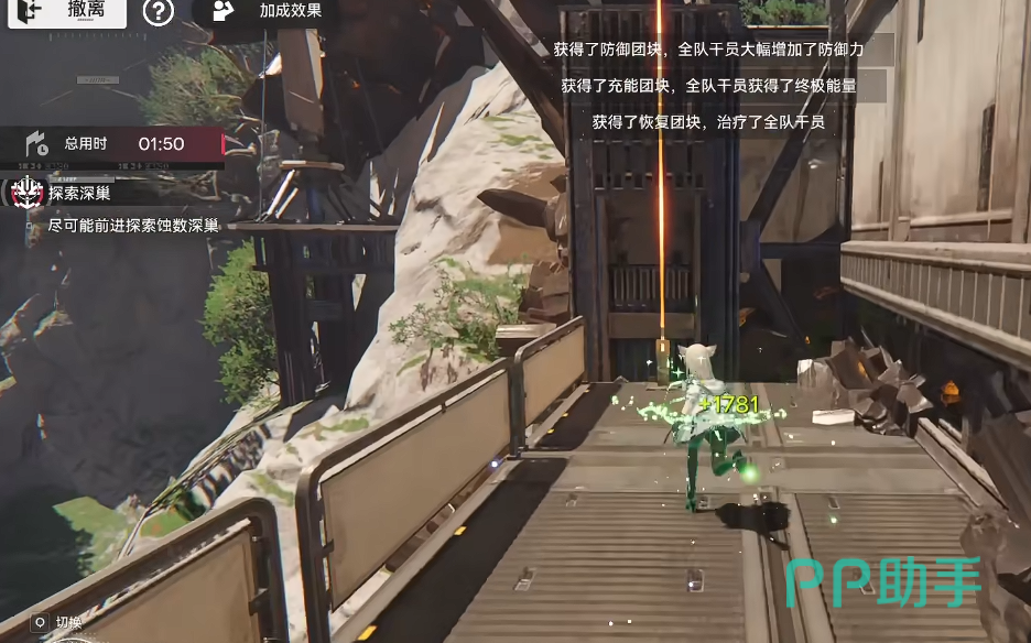 第二处机关区难度显著提升,平台结构更复杂、间隔更宽,对操作精度要求更高。此区域新增绿色增益道具,效果覆盖全队,可同步提升攻击力、治疗量与防御力三项基础属性。该类Buff属于高优先级资源,务必确保全员拾取,否则第三波精英怪将极大考验队伍的持续作战能力与容错空间。