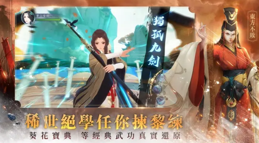 游戏的玩法简单,游戏初期,玩家只需要进行主线剧情内容的挑战即可,而在主线之中,玩家会逐一揭晓这个江湖世界内的丑恶,并且了解到正教和东方不败一类邪修角色的恩怨情仇,在此期间,玩家成为正道人士亦或是成为邪教人士,只在一念之间。
