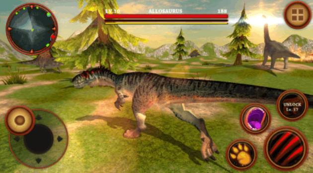 这款模拟了恐龙世界的生存类游戏沉浸感超强,游戏中的恐龙嘶吼声、原始丛林的地图复刻真实,恐龙之间厮杀狩猎的血腥场景也是亮点,3D的侏罗纪时代刻画让生存环境更加复杂,无数大型恐龙会与你一起狩猎、厮杀,操控自己的恐龙觅食强化让人乐在其中,双轮盘的控制体系会让恐龙的动作更灵活哟。