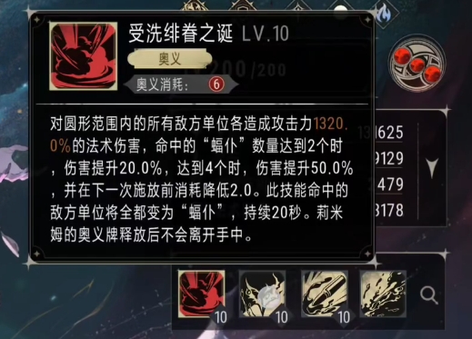 莉米姆的基本攻击有着独特的伤害机制,在常规状态下她的基本攻击能够对主目标造成法术伤害,而当她处于血月状态这一特定条件触发时,莉米姆的基本攻击迎来了强化,此时其回能效率会得到50%的提升,这意味着她在战斗中能够更频繁地使用技能,同时基本攻击的伤害系数还会额外增加20%,原本看似伤害比例相对较低的基本攻击,在这些效果的加持下,实际造成的伤害还是不差的。