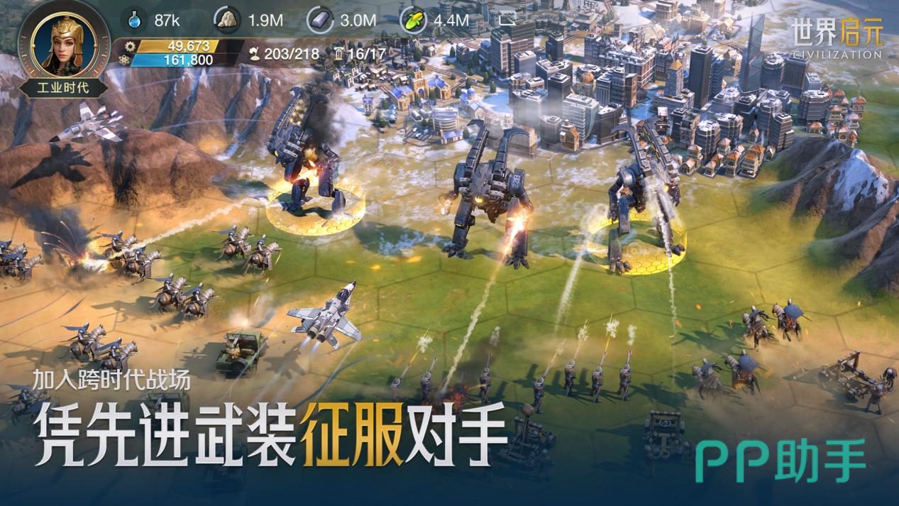 在游戏中,从华夏、古希腊等五大势力任选初始文明,各文明个性与兵种特质鲜明。技术树架构是一大特色,我们依靠研究科技发掘新内容,推动文明从远古时代迈向工业时代。除了基础硬件建设,我们还能够开垦田地、探寻古迹。游戏中还可征召英雄,提升作战实力,和其他文明开展外交交流,上演激烈策略对抗。