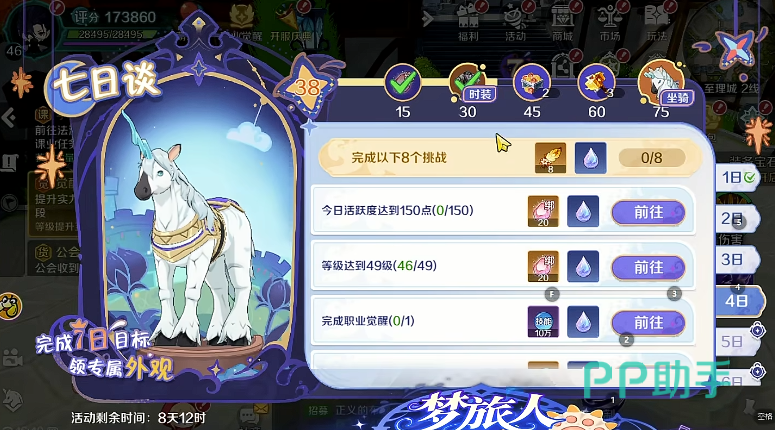角色等级达49级后,觉醒系统正式解锁,新增专属觉醒技能与属性加成路径。配合新手期七日登录奖励,觉醒进度大幅提速:首日赠送使魔召唤材料,次日发放红品装备,第三至六日依次提供灿金使魔等关键资源,第七日直接授予绯红等阶使魔,显著提升初期战力曲线。此外,上线当日即激活福利周卡,每日可领取绑定金钻及海量养成材料;相关骑士团任务无需额外耗时,通过日常活动与挑战玩法自动累计进度,奖励涵盖红品铭文宝箱、超级锻造锤、完美侍者时装及积分达标后解锁的独角兽坐骑。