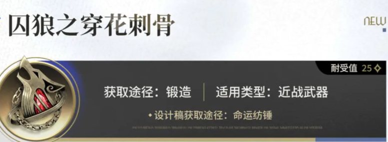 最后一枚独立魔之契为「囚狼之穿花刺骨」,专精双刀流派。提供攻击速度加成,并重写滑铲攻击动作——由原有位移技变为向前高速突进,对路径上所有敌人造成连续伤害,显著增强双刀机动性与群体压制力,与「囚狼之剑影绽放」同属囚狼系列,但适配武器类型与机制方向截然不同。