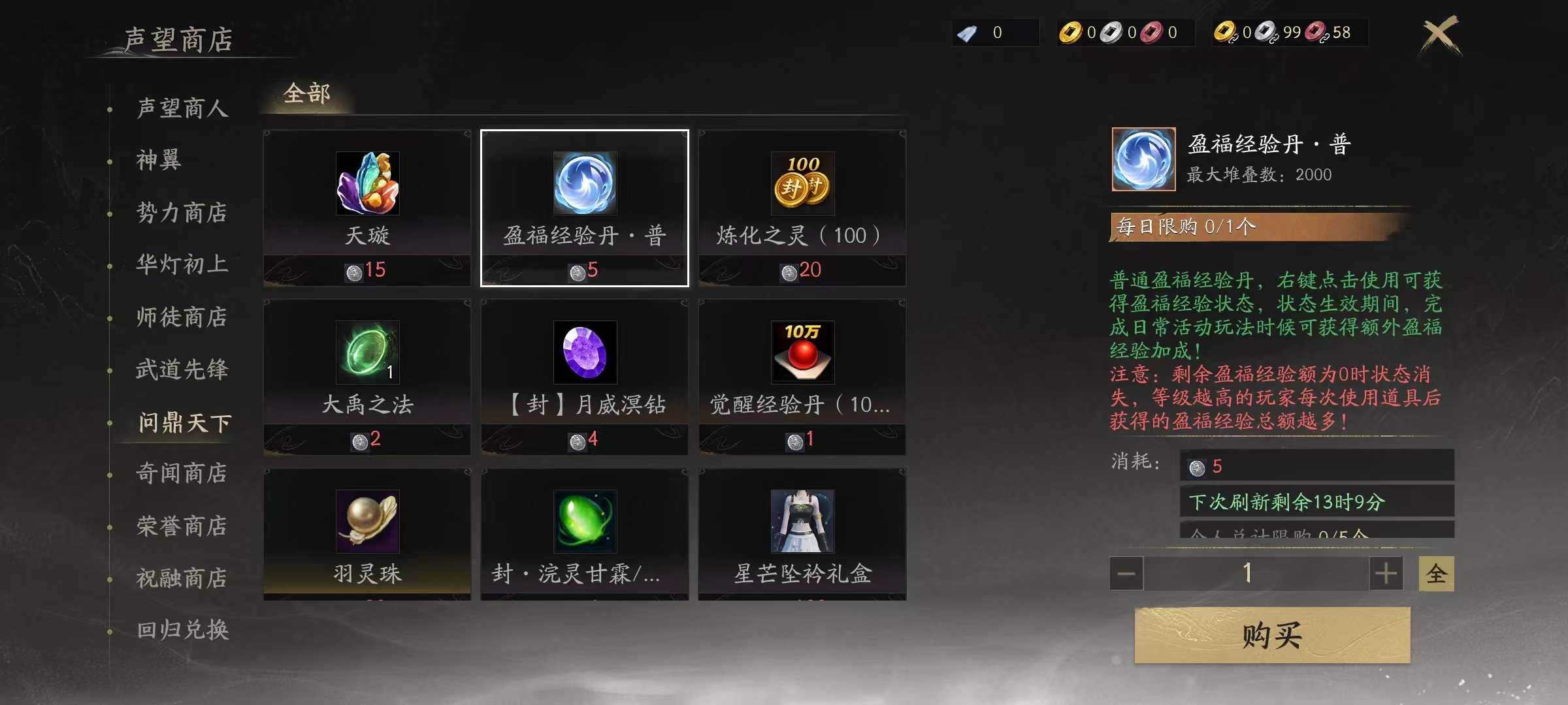 天宝声望聚焦周期性玩法,主要通过周常副本与限时活动获取,包括三仙六魔挑战、大荒演武堂竞逐、祈福补天仪式等。低等级玩家亦可通过童趣任务、诗与酒文斗、初入大荒引导流程等适配内容稳定产出。该声望用于激活“宝鉴任务”中的额外奖励层数,显著提升周资源收益效率。华夏王朝声望则依托游戏内交易生态,玩家可向指定声望商人出售非绑定杂物、副本掉落的能量符、炼化配方及已过期的活动道具,换取声望积分。其兑换池涵盖实用型生产工具,如鱼竿、鱼饵、钓点解锁券等垂钓系统核心物资。