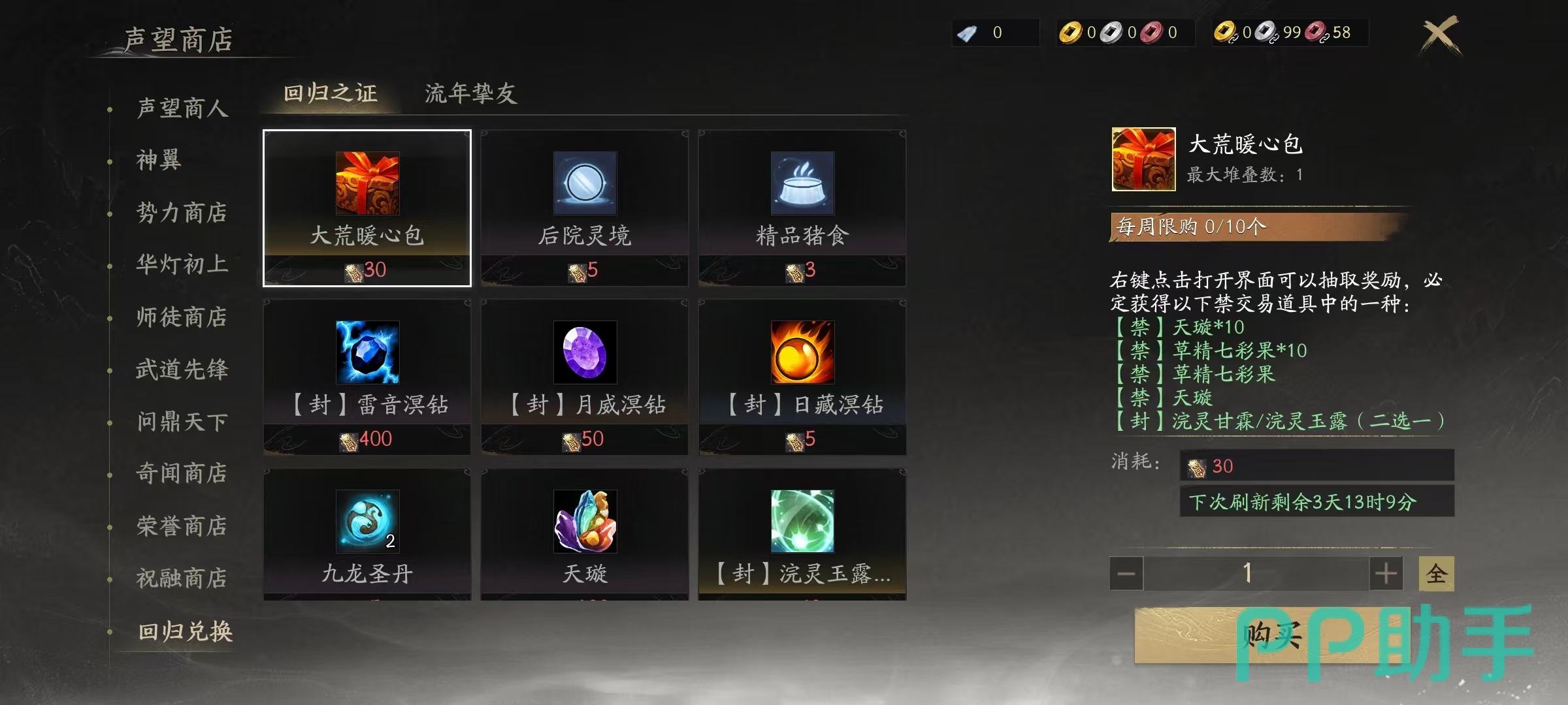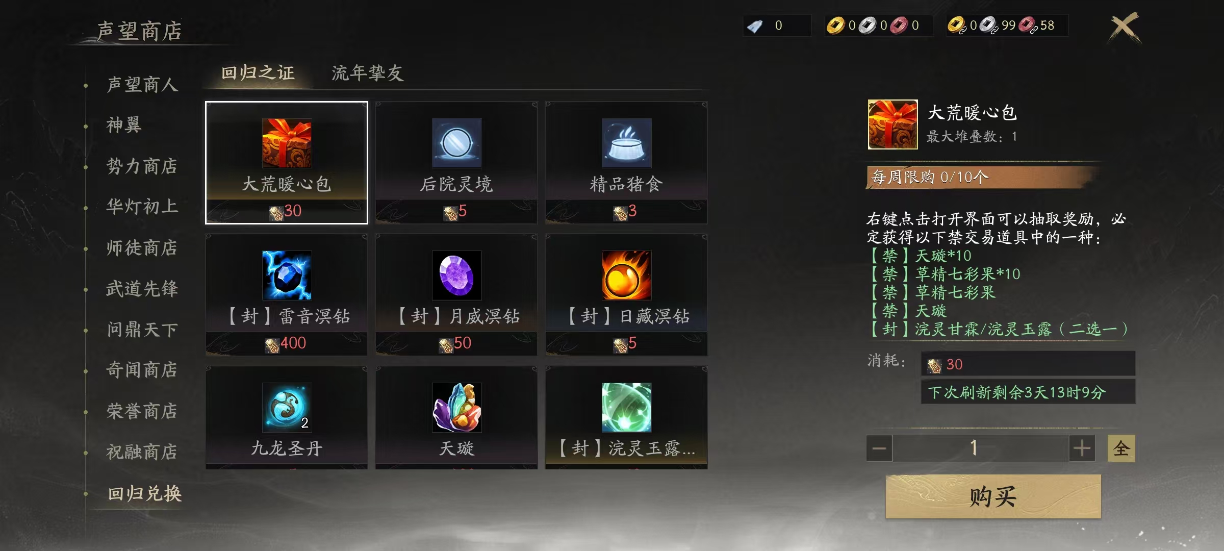 炼化声望专用于装备属性拓展,玩家消耗“炼化之灵声望”或元宝进行炼化操作后,可为指定装备附加额外词条或强化既有属性。该声望获取途径明确,仅限炼化界面操作触发。大荒钱庄声望侧重PVE协作产出,主要来源为“饕餮讨伐战”通关后概率掉落的武库密钥,右键使用即可转化;部分限时消费返利活动亦会按比例返还该类声望。王朝军资声望则与商城直购强关联,玩家需在道具商城购买“国之恩典”或“国之恩赐”礼包并完成使用动作方可获得,用途覆盖广泛——既可在声望商人处兑换稀有材料,亦支持对已过期的外观道具进行续费激活。