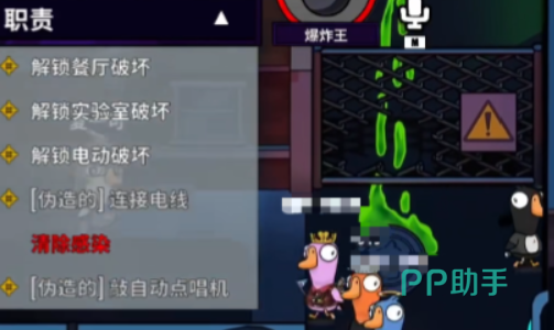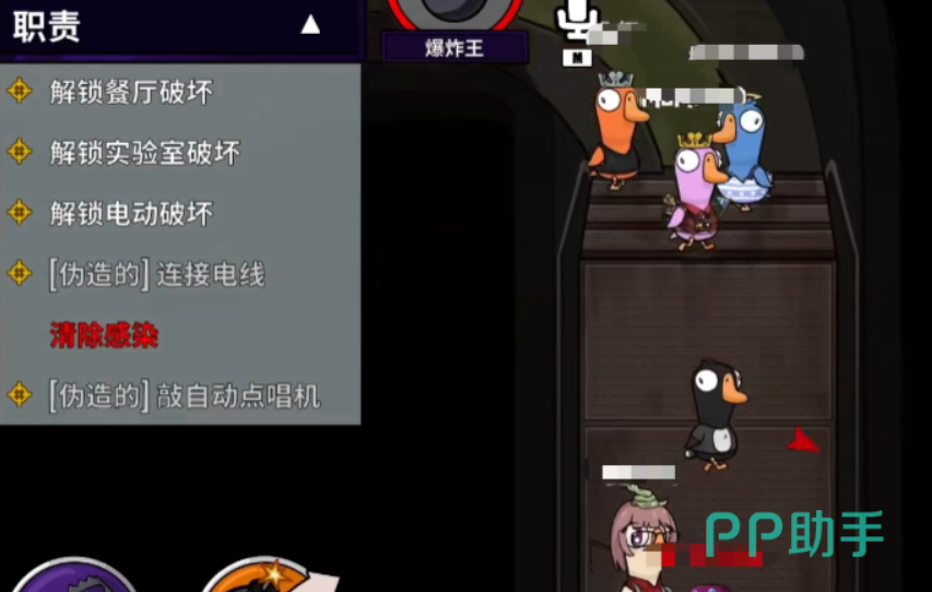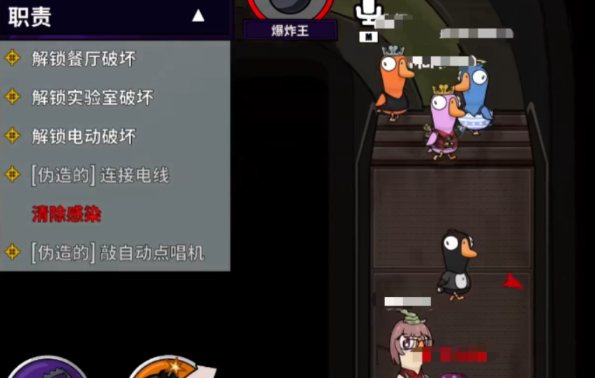 爆炸王隶属于鸭子阵营,拥有独特的炸弹布置能力。他可以在地图中设置陷阱,当其他角色踩中时会受到伤害甚至直接被淘汰。这一过程不会触发警报系统,也不会暴露身份信息,隐蔽性强且具备高威胁性。如果团队需要一个能打乱局势的角色,爆炸王无疑是理想人选。但需要注意的是,该角色不具备近战攻击手段,唯一击杀方式就是通过安放炸弹实现。此外,炸弹具有传递机制:一旦目标接触到炸弹,头顶会出现15秒倒计时,在此期间可将炸弹转移给他人,但剩余时间不会重置。