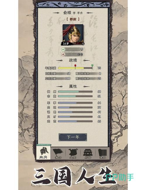 《三国人生模拟》是一款让人深陷其中的策略模拟游戏,它不单单是让玩家体验三国历史的重大事件,更是让玩家从一个微小的角色做出决定、经历成长,最终书写三国传奇。虽然角色初始并没有过多的资源和背景,但通过与游戏世界中的人物互动、参与各种事件,玩家可以一步步成长为一位英雄。
