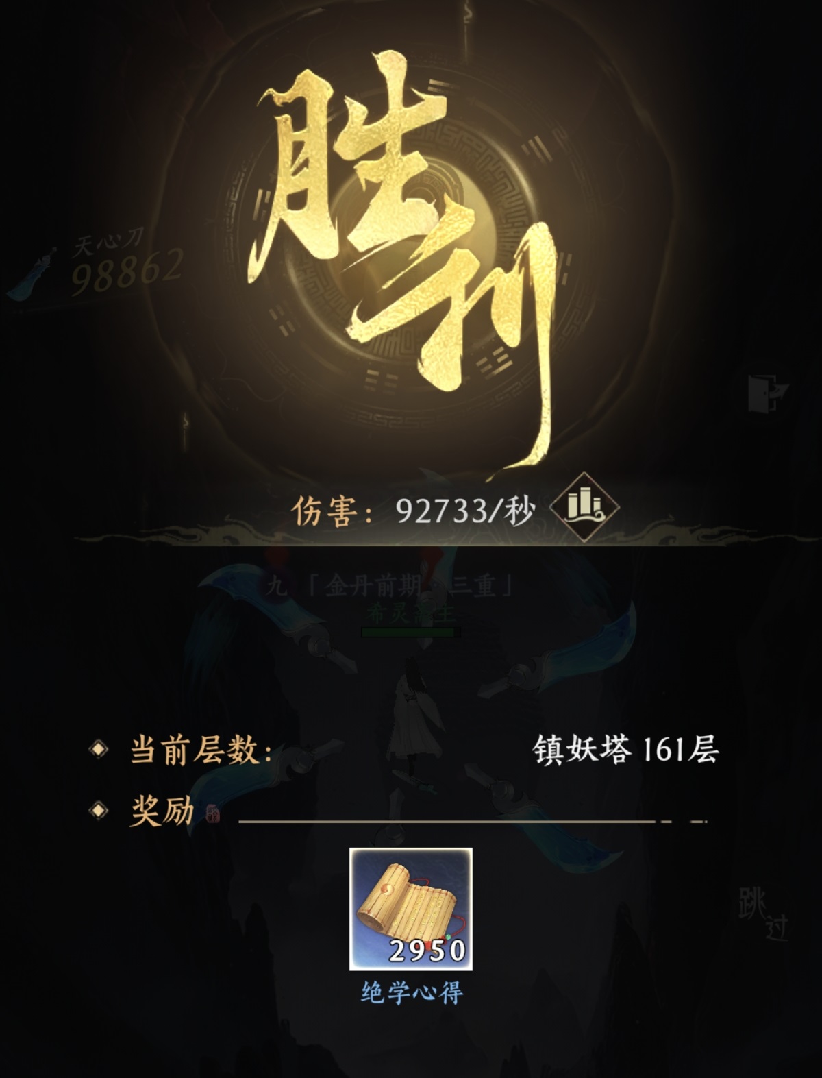 需特别注意:镇妖塔设有智能碾压机制。当角色实际战力超出当前层数推荐战力阈值达一定比例(通常为150%以上),系统将自动跳过战斗动画,实现“一键通关”。因此,新手阶段不建议强行推进——应优先集中资源提升法宝品阶、功法等级、灵根资质及装备强化等基础战力模块。待战力稳定触发碾压后,再回溯清理未通关层数,可大幅提升每日效率。