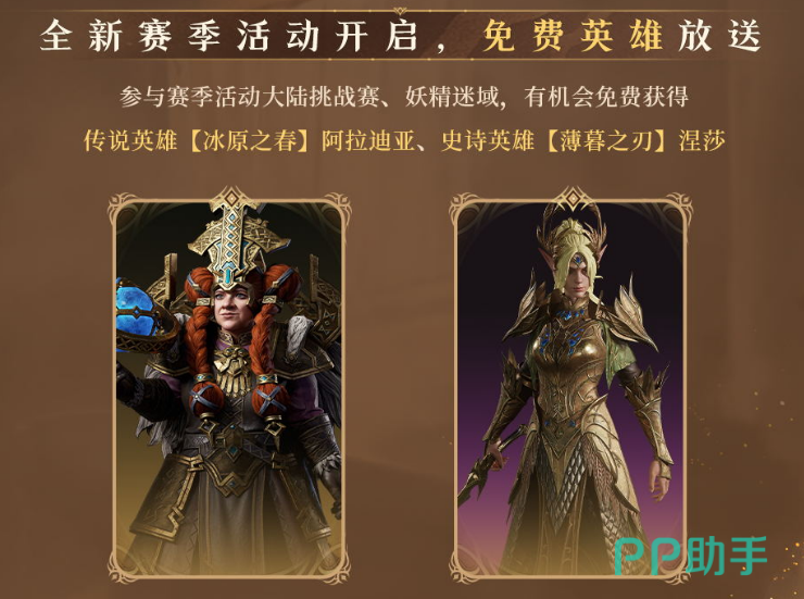 当然了,S3赛季也不会忘记对玩家们的奖励。通过参与赛季活动“大陆挑战赛”和“妖精迷域”,你有机会免费获得传说英雄【冰原之春】阿拉迪亚,以及史诗英雄【薄暮之刃】涅莎,为你的队伍增添强力的战力。