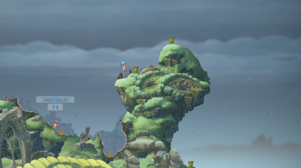 武器系统深度还原经典设定,涵盖火箭筒、香蕉炸弹、土拨鼠钻地器等多种载具与投掷物。不同武器具备差异化射程、爆炸范围、地形破坏力及连锁效果。例如,火箭筒既可直击敌方单位造成高额伤害,亦可精准轰击其脚下地貌,触发塌陷判定实现“秒杀”。对局中还将动态空投补给箱,内含稀有重型武器或功能性载具。但拾取存在距离限制——若当前移动步数已用尽,即便空投近在咫尺也无法获取;更需预判地形变化风险,防止下一回合对手破坏地面导致空投坠入不可达区域。