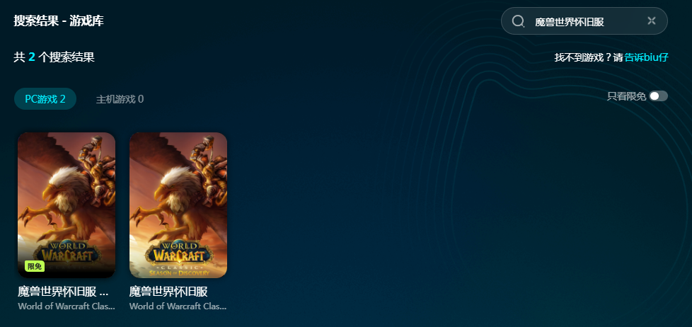 biubiu加速器给新用户发放免费加速3小时的福利,同时还有【biubiu不卡顿】兑换码赠送给所有用户3天免费加速时长,这些免费试用的活动都是为了能让更多人的用上biubiu,感受它带来的网速革新。魔兽世界怀旧服是biubiu里的资源之一,除此之外平台里还有其余上万款游戏,都能用免费的时长来体验加速。