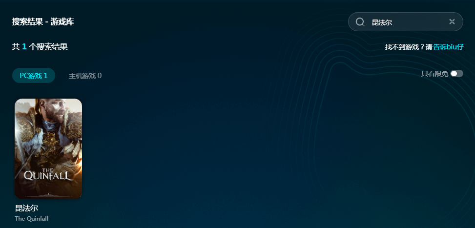 biubiu启动方便,加速范围又广,支持的游戏特别多,除了昆法尔以外大家还能在里面找到上万款加速资源。平台还开放了一个限免游戏池,只要是游戏池里的资源都能免费加速。大家如果找不到自己玩的游戏,可以跟biu仔说,系统会尽快将资源添加到平台里。