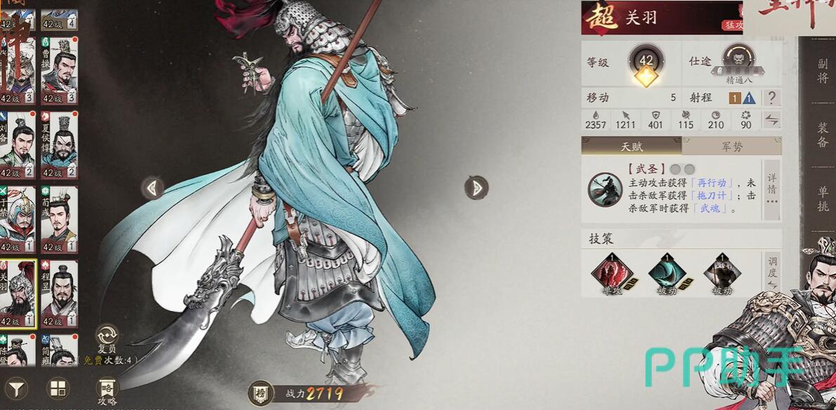 在《三国望神州》的武将系统中,关羽是一位典型的前排高爆发输出角色。本文将深入解析关羽的核心机制与实战应用,帮助玩家全面掌握这位蜀国猛将的使用技巧。关羽的强度极大依赖于“武魂”系统的激活,未解锁时仅为常规范围伤害型武将,一旦激活武魂,则整体战力飞跃,成为能够一击重创敌方半队的顶级主C。
