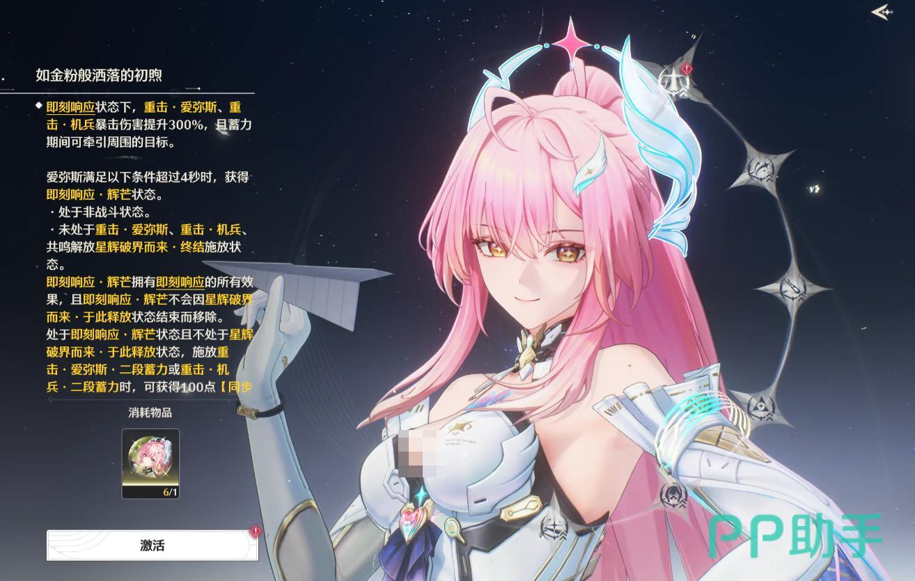 本版本将分阶段实装两名五星共鸣者。首位登场的是热熔属性迅刀使用者——爱弥斯,定位为高爆发主C。其背景设定为原拉贝尔学院学部成员,现以电子幽灵形态穿梭星海,肩负“拯救世界”的使命。该角色拥有高倍率共鸣解放技能,可高效触发震谐与聚爆机制,是3.0新战斗体系下首名完整承载双核协同逻辑的顶级输出角色。搭配已上线的琳奈、莫宁,可构筑成型即战力极强的震谐聚爆队列。
