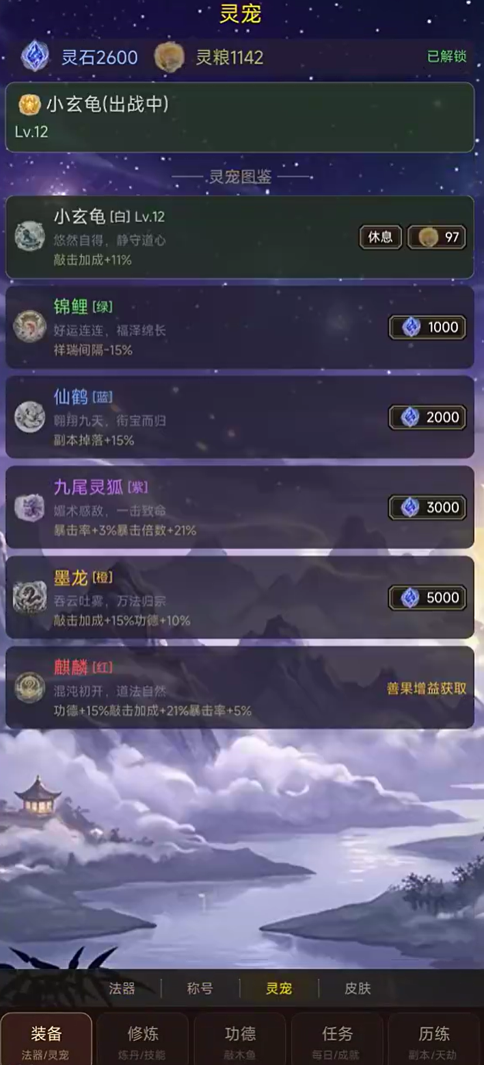 作为典型放置类修仙产品,《积点功德》支持离线挂机收益——即使关闭应用,功德仍可持续累积。此外,游戏内设有功德塔挑战、多层秘境探索及周期性日常任务等模块。当角色战力成长至相应阈值后,玩家可逐步解锁并通关上述内容,从而获取更高额功德奖励,并开启如灵兽驯养、心法研习等进阶玩法。