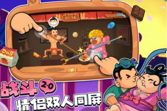 以吃货之间的对决为主要核心,采用搞笑又诙谐的漫画风格进行打造,每个人物角色以及细节都展现出了搞笑的氛围感。操作方式特别简单,点击屏幕就能完成操作,利用手指快速点击屏幕并拖动竹签,将食物喂到对方的嘴里,先将对方喂饱的一方就算获胜。其中涵盖多样化的模式,比如好友开房联机以及排位赛等等。