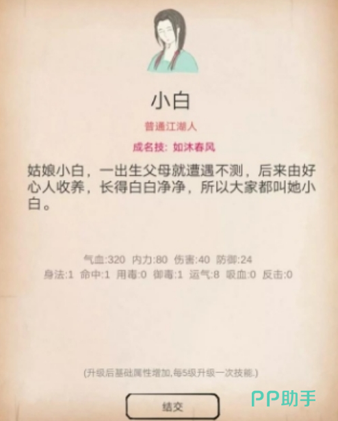 许多玩家在玩所谓侠客时通关效率不是很高,导致人物角色的升级比较慢,与其他玩家的实力差距过大,使玩家没那么好的游戏体验,那么小编今天就给大家整理出了一些有关于所谓侠客攻略的内容。这游戏你一共会获得十个角色,其中需要养的有:武媚月,小白,二狗子。
