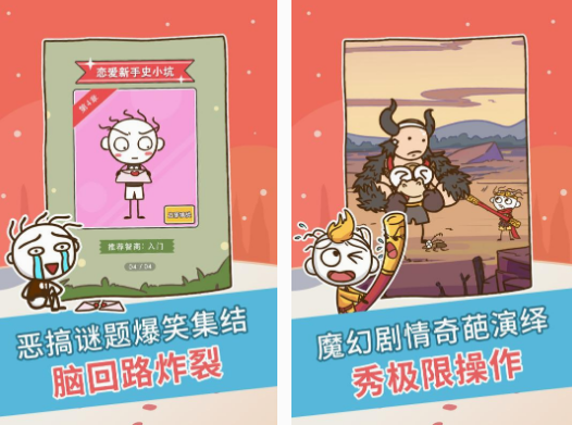 这是以斗智斗勇为主的小游戏,既能邀请好朋友,在这款充满着恶搞谜题的游戏当中享受快乐,最主要的就是里面的题目都不是普通的,而是将爆笑的内容融合在一起的。需要你在玩的时候,发挥自己的智力,在魔幻的剧情以及人物奇葩演绎的过程中,你也需要通过正确的操作,来完成答题,是一款不能犯规的游戏。