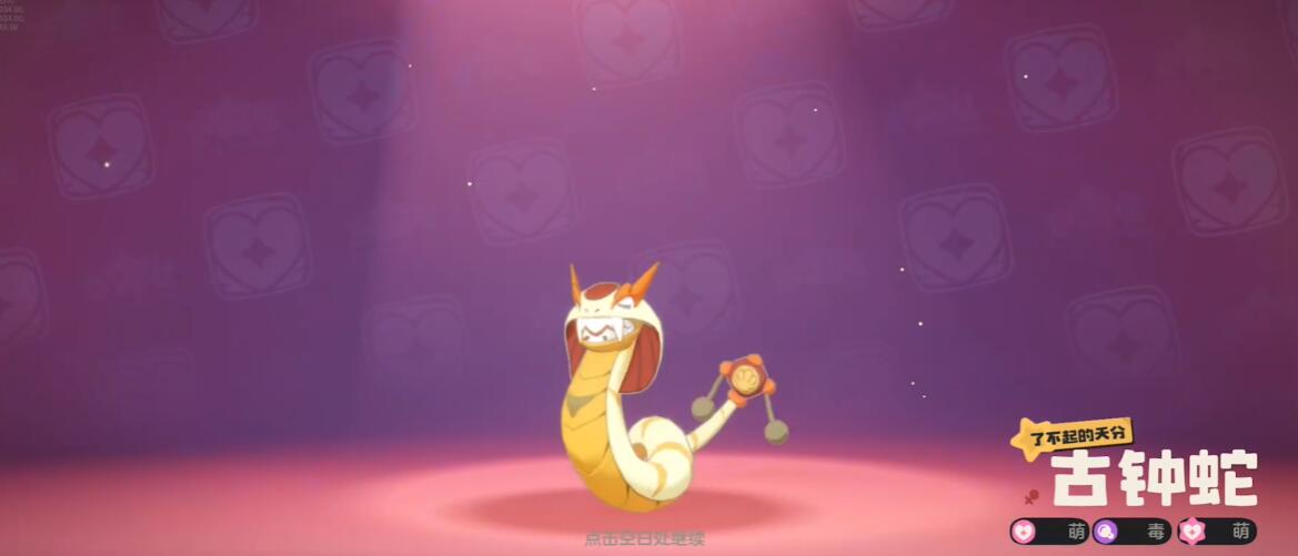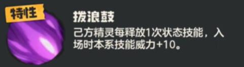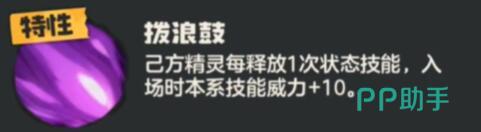 古钟蛇的核心优势在于特性拨浪鼓,己方每释放一次状态技能,本系技能威力提升10点,无叠加上限。优先携带状态类技能以激活特性,例如防御反转(互换敌我防御/魔抗等级)与黑色之眼(限制敌方换宠)。输出技能推荐毒孢子(叠加中毒状态)与超级糖果(高威力萌系攻击),前者通过中毒持续消耗敌人,后者配合特性叠加实现爆发输出。